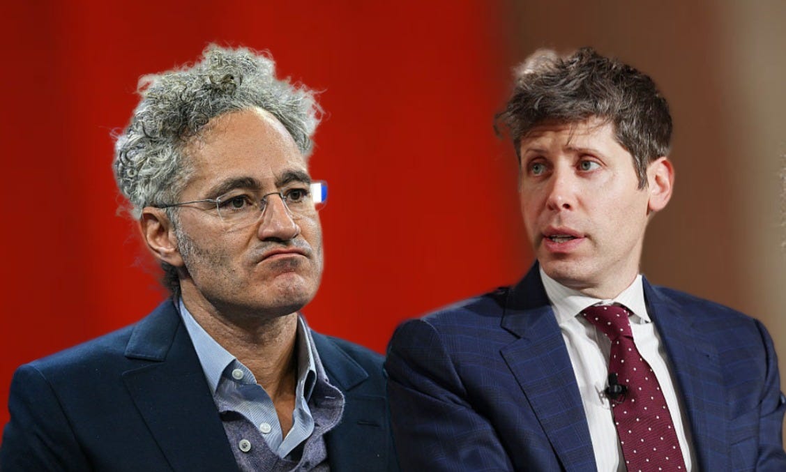 Even as the world reels again from the old-fashioned disruption of war, two of the leading tech broligarchs looking to define the human future — Alex Karp, the CEO of surveillance and defense giant Palantir and Sam Altman, head of chatbot pioneers OpenAI — made the rounds of the summits and business news shows to describe their vision of the A.I.-first future.